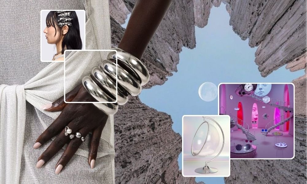 This trend allows brands to tap into narratives of exploration, innovation, and imagination. Through ambient lighting, opalescent finishes, and immersive environments, campaigns can feel otherworldly while remaining refined and elevated.